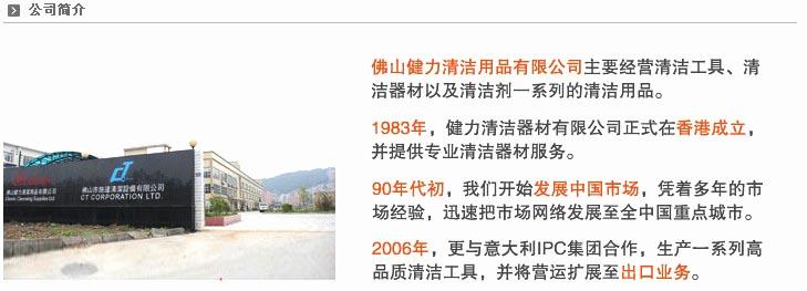 佛山健力清潔用品有限公司公司于1983在香港成立,初時(shí)主要業(yè)務(wù)是提供清潔機(jī)械之維修保養(yǎng)及清潔技術(shù)顧問(wèn),并兼營(yíng)機(jī)械銷售,后憑著多年累積之市場(chǎng)及維修保養(yǎng)經(jīng)驗(yàn),直接引進(jìn)歐美各地之專業(yè)產(chǎn)品及技術(shù),而配套成為深受用戶們信賴之健力清潔用品系列。 健力用品供應(yīng)有限公司于1991年展開在中國(guó)國(guó)內(nèi)之業(yè)務(wù),總部設(shè)于廣東佛山市,而分銷網(wǎng)絡(luò)已遍及各省主要城市。佛山總部除陳列室外,并設(shè)有倉(cāng)庫(kù)及維修中心,以支持各地分銷業(yè)務(wù)需要,務(wù)求能提供高質(zhì)之服務(wù)予使用客戶。